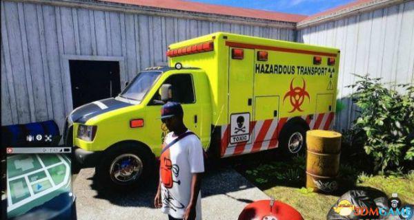 在芳草地岛上有一辆隐藏的救险车,后车厢一直冒绿烟。