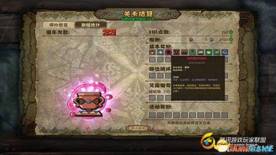 S级浮岳龙副本的基本奖励除了HR750点(好友加成787),银币2000(好友加成2100)点,以及浮岳龙基本素材以外,还包括了2个幻喵玉,2个梅杰波尔坦硬币,以及4个狩魂点和一个105级的太古武器。值得注意的是,截止发稿前,不知是出于哪种方面的考虑,S级浮岳龙副本中设定只有坠机成功并破坏四个排气孔才会掉落武器升级所需的“太古的龙木”。这让一些急于升级武器的玩家感到了一些失望,因此大家可以根据自己的需要选择是否进入该副本的狩猎。