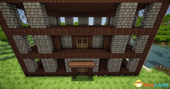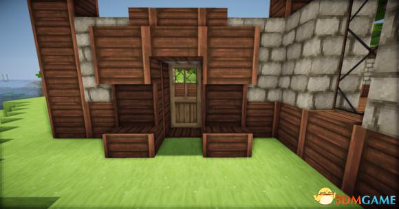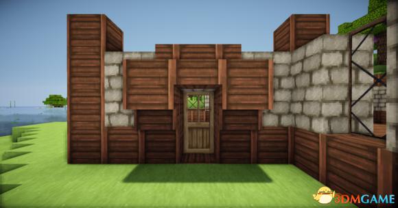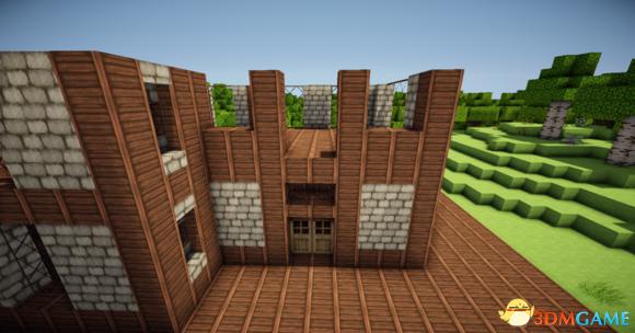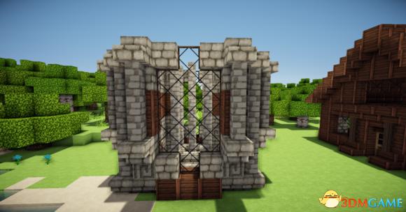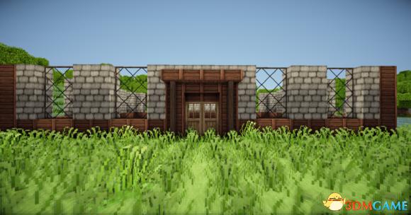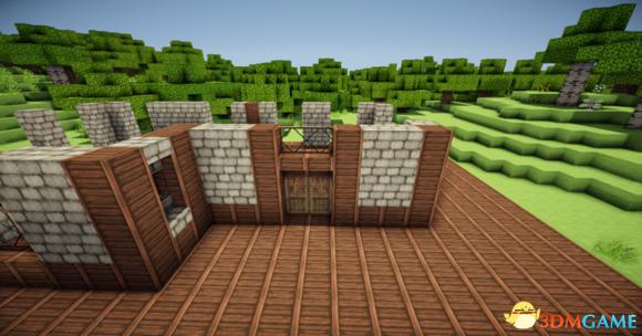 从里向外放上门 门上倒放楼梯 接着门宽边 原石墙 栅栏 楼梯