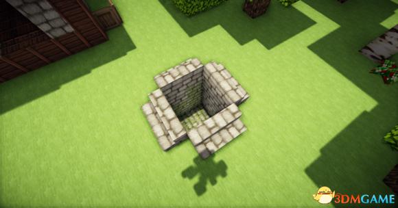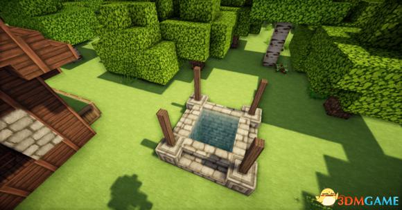 井很简单不需要什么说明了不过值得一提的就是井底的一些部分可以使用苔石砖
