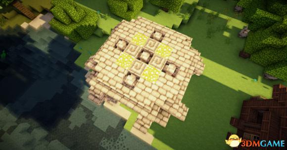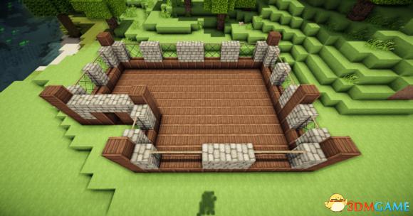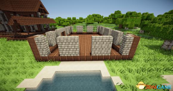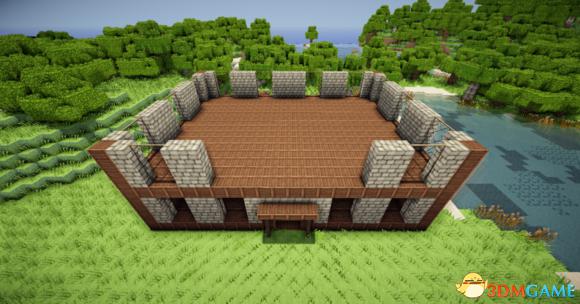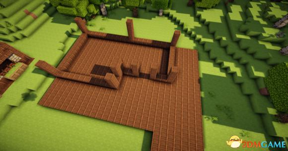 中间用8个石砖楼梯围成一圈中间放上园石墙(与玻璃等高)