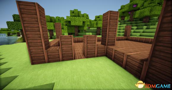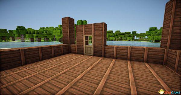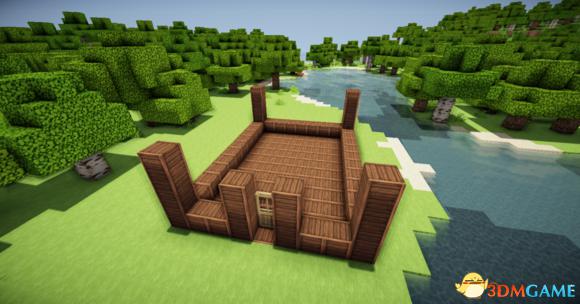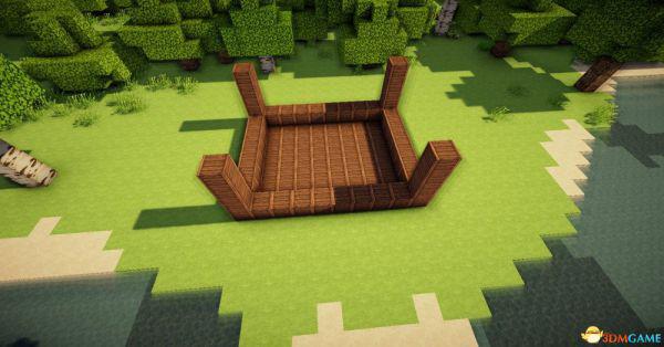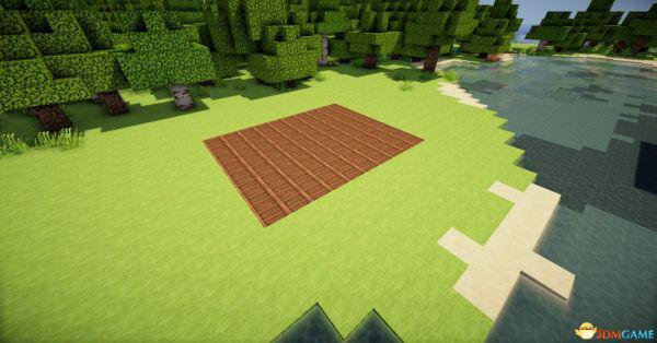 首先用两种颜色不一样的木板和玻璃弄成这样(请请确保水车有两至三格在水里)