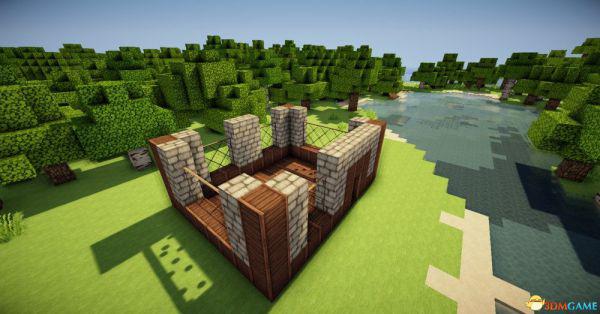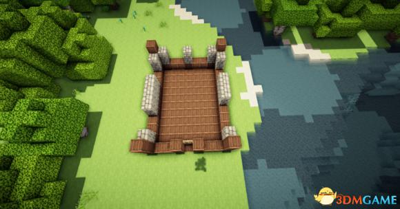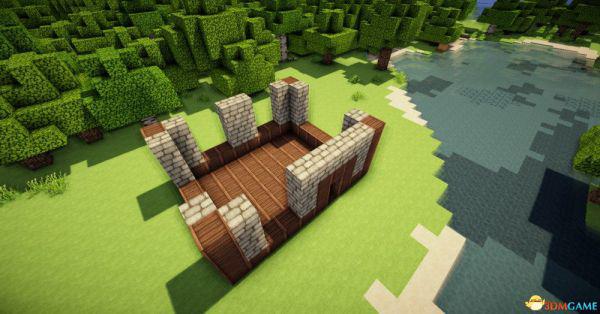 四个角上放上原石墙5格然后用石台阶盖上