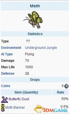 还要蝴蝶尘埃 由下面这货掉落,这货出现在肉山后的丛林,刷新率比较低,不过如果你经常下丛林找花苞的话,还是会偶遇的。掉落率50%还不错。蝴蝶翅膀光效不错~