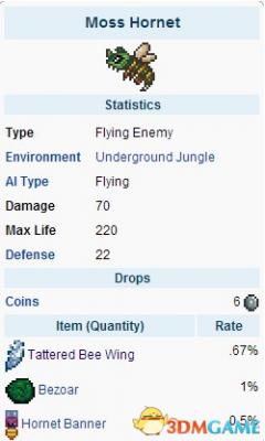 要个蜂翅合成,肉山后的丛林这种略绿色的蜜蜂掉落,蜜蜂非常多,掉落率是0.67%,不是67%,前面有个点的。。。。比较低,不过丛林逛着逛着就打到的,副产品。