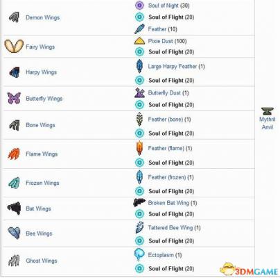 泰拉瑞亚翅膀合成方法大全 各种翅膀特效数据一览