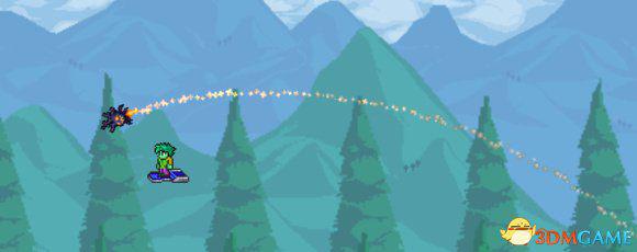 当玩家快速移动时,它会在后面跟上,同时伴随一条火焰轨迹(具有照明功能)。如果位置恰好,它就会绕着玩家转圈。