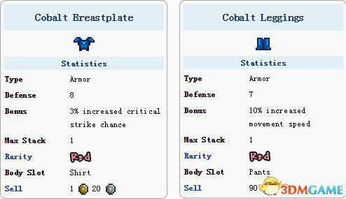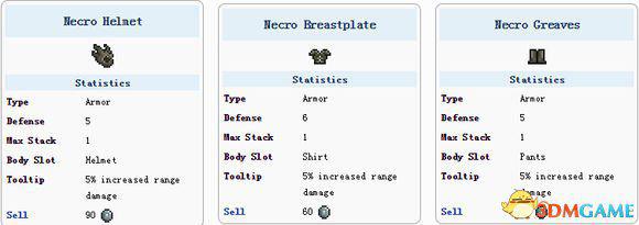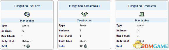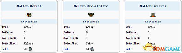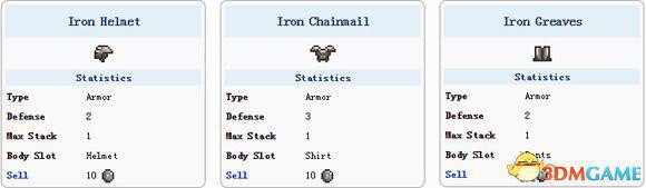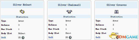 头盔在商人处以8金币购买(好贵!!),其他部分从洞穴生态环境中刷出的不死矿工(Undead Miner)和吸血矿工(Vampire Miner)处掉落,坑爹的掉率……