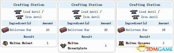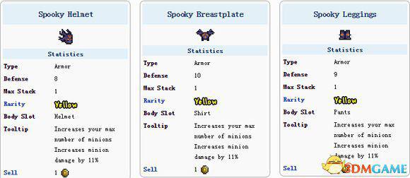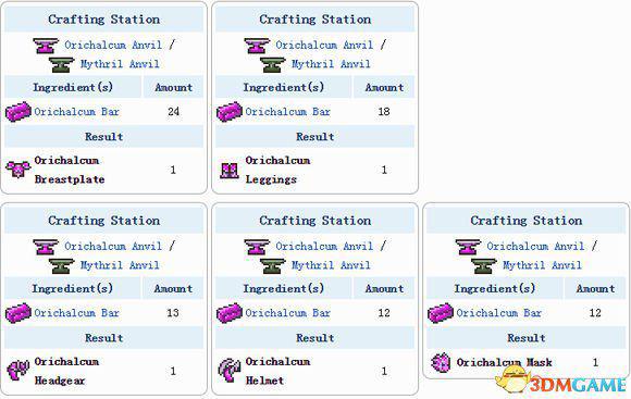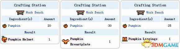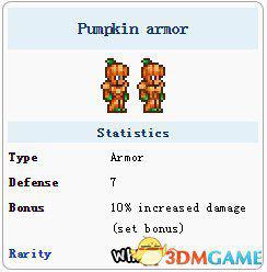 点评:和铜套装一样,鸡肋,新手最好不要做,有那么多铁做家具都比这个值钱~~~反正有了南瓜套就可以去撸眼珠子boss……而且还极其不好看……不吐槽了。