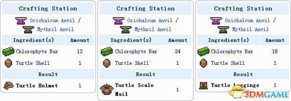 合成表,乌龟壳是从巨大乌龟身上掉落的,这里为了给某些人留点就不放了(呵呵其实我很想放)