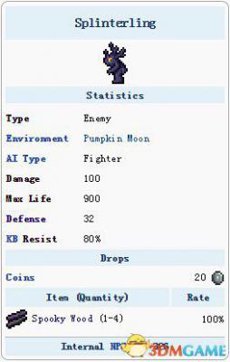 南瓜夜中第一波就有的树精和第四波开始出现的哀嚎巨木被杀死时会掉落一定数量的幽灵木……