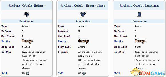 神圣胸甲=钴蓝胸甲+秘银胸甲+精金胸甲+20个力量之魂