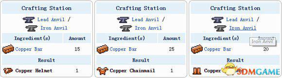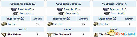 合成需要15/25/20个铜锭/锡锭,好烂哦,还不如攒着去卖钱呢~!(商人:你当我收废品的吗?)