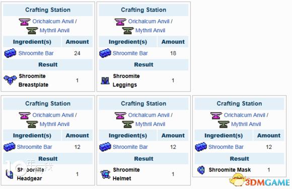 这五种都需要一共75个对应的木头,头部,胸甲,鞋子分别需要20/30/25个对应木头。这些木头呢,则分别在普通地形/丛林/腐化之地/血腥之地/神圣之地自然生成。