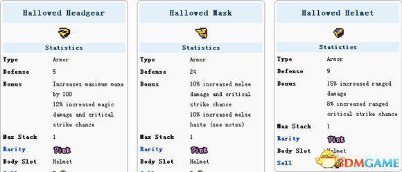 神圣面具(近战)=钴蓝战盔+秘银战盔+精金战盔+20个视域之魂