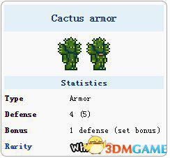 仙人掌套总共是4点防御,再加上套装加成的1点,一共5点防御。一个工作台妥妥的!