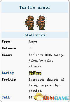 这一套就是PE版里最强的近战套装了(甲虫套还没出来),防御力好高的,有67的哦,哇哈哈哈哈……每件的效果当然很扯淡,除了惯例的近战和会心一击几率,居然还有——敌人都会像疯了一样冲向你?!