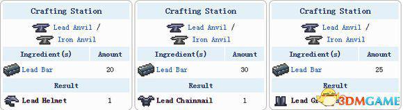 合成表仍然是20/30/25,共75个铁/铅锭,也就是要225个铁矿石……坑爹呢这是?有225个铁矿石做什么不好?还需要铁砧才能做,也就是240个铁矿石,做什么不好!