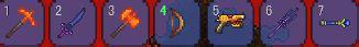 妖刀村正 攻击力19 非常快速的攻击速度 进程伤害 制作夜刃 魔法飞弹 法器 消耗10法力 可以用鼠标操控位置 伤害23 普通的攻击速度 海蓝魔杖 喷射一群水流 非常快速的攻击速度 消耗6法力。