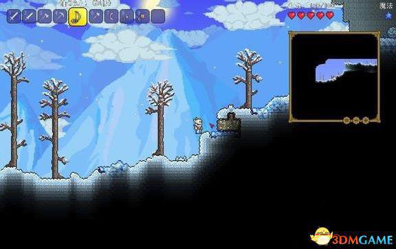 下矿辛辛苦苦打造了一套银套装,这种地方叫雪原,全是冰和雪,少有植被或土壤。前期特殊生物有企鹅,爱斯基摩僵尸,冰霜史莱姆。树木没什么特殊的。就长的不一样,砍下了都是木材。地下的宝箱均为冰霜宝箱及少量黄金宝箱。