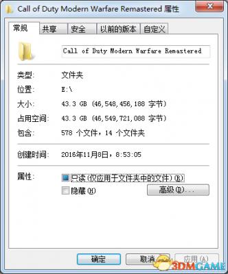 如图,这是使命召唤4现代战争重置版需要安装的空间。