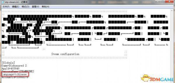 1、在你的耻辱2游戏目录中找到"stp-steam.ini",用记事本打开。