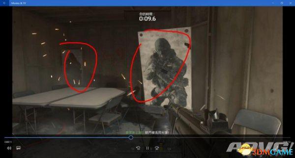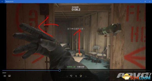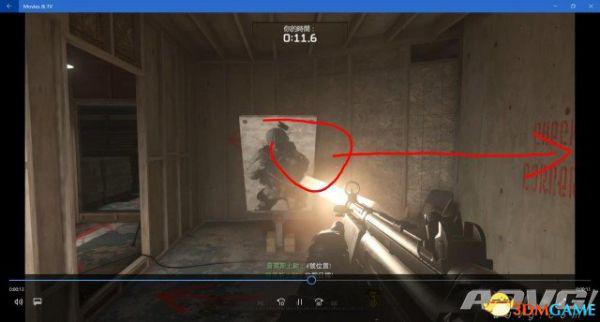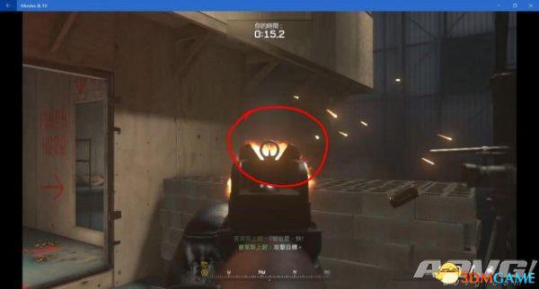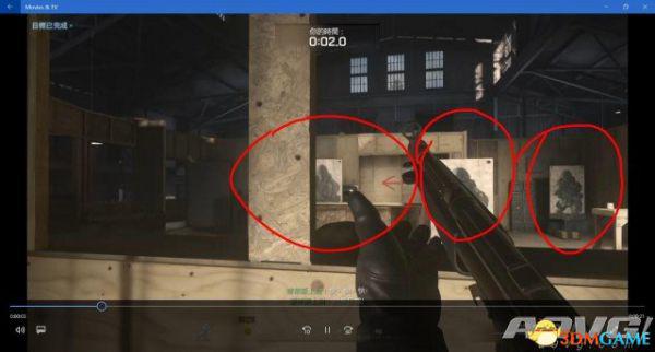 打掉右边的靶子后按下L1,迅速转向6号位的门口。