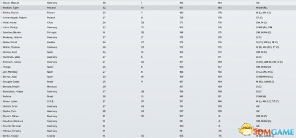FM2017拜仁球员CAPA资料一览 拜仁球员CAPA图表