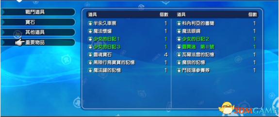 收集品,部分游戏中自动获得,部分需要寻找获得,绿色字样的物品可以查阅详细。