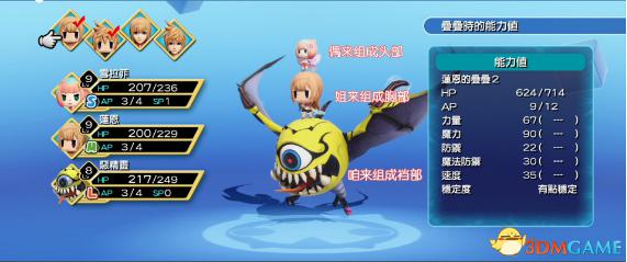 叠叠的单位分为L,M,S,对应Large(大型),Middle(中型),Small(小型),叠叠的方式是L在下方,M在中间,S在上面,游戏初期推荐双主角以全身高作L,抓到的L型的怪再变成Q版坐中间。