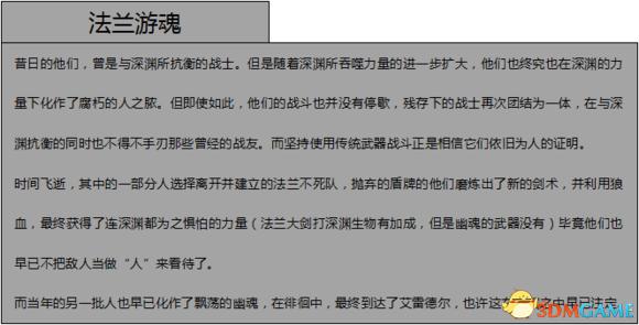 顺便说一下,游戏中那个拿追地者的是米尔伍德骑士长,整体能力比普通的以及红眼的高一些,魂系列一般都存在个别看上去一样,但是完全不同的兵种。比如正篇里的教堂骑士和妖王的亲卫骑士,这两个兵种长的几乎一样,但实际是完全不同的,一些剧情分析贴误把他们当成同种敌人分析所以一直弄不清,幽邃教会和妖王的关系,实际二者没太大联系。