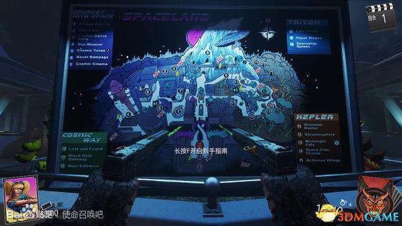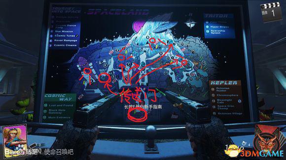 地图大体上分为6个区域——出生地(下),中心区,Journey into Space(左),Polar Peak(上),KeplerSystem(右),地下通道。(游戏厅区域因为有一个电闸所以单独从Journey intoSpace中提取出来说,不过他仍然包含在其中,游戏厅在左区和上区之间,看到那个闪电标志就知道了)