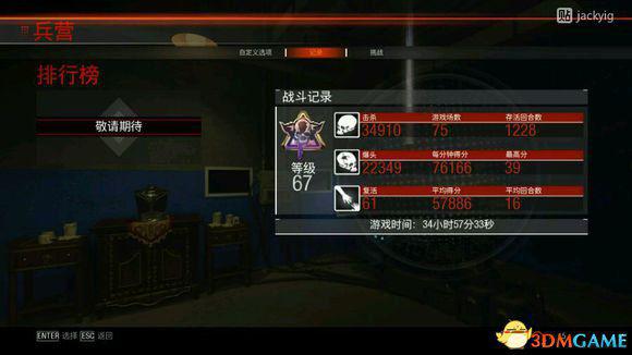 (34个小时67级所有武器配件槽解锁,我个人认为IW僵尸的武器等级升级速度比T组的快,正常情况下T组的武器等级平均一级100只,IW没做过统计,光顾着打了)