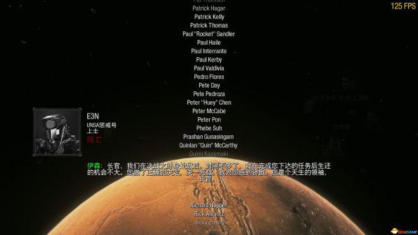 是在结局播放制作人名单时,背景是整个火星,点右键,可以看到背景放大,E3N的头在往下掉,头上蓝光还没灭,说明他还没死。