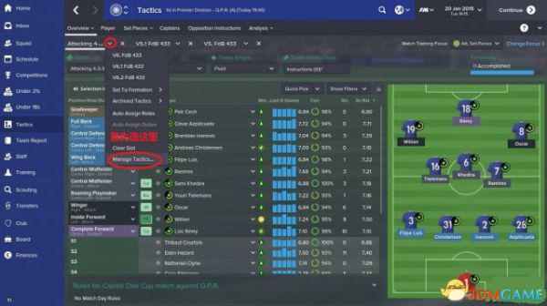 接着选择你要替换的战术旁边的角,然后会有一个栏,选择最后一个,战术管理