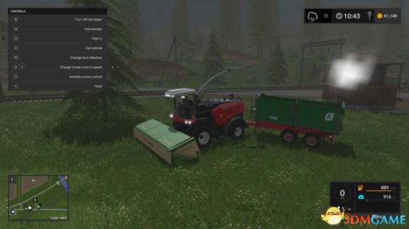 首先看一下收割牧草的装备:牧草收割镰刀,牧草收割机,大货斗(我这个21T的),准备换60+的货斗,好处是一套设备搞定牧草,牧草到处都是,随便找个草多的地方开自动巡航就完事,或者自己的田里雇工人搞。开自动巡航的时候拖重物一直按着2加速可以突破速度限制,直接升到最高速度。