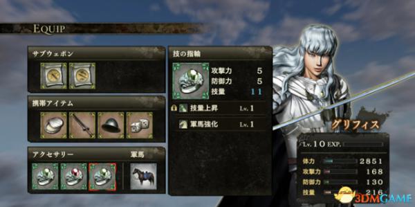 饰品也就是传统无双的装备,有三种不同等级。每种饰品除固定提升的攻击力,防御力和技量外,还有各种不同的能力加成(如提升攻击力,回复体力等)。