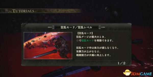 蓄满狂乱槽中的狂乱值后,按○能发动狂乱模式。该模式下攻击力上升,体力减损下降,战斗力大幅上升。发动后,狂乱槽的技量会随时间衰减,为0时回复到普通模式。这时则需要再次通过杀敌蓄满技量。连段越高,狂乱槽蓄满越快。