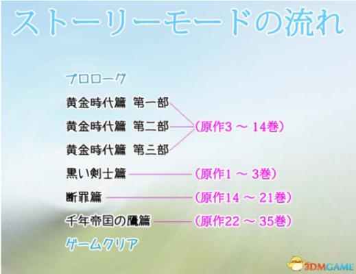 下面为大家献上游戏的故事模式全流程图文攻略,玩家将扮演作为雇佣兵的格斯开始一段血与泪的冒险。游戏中大部分剧情动画使用了大量《剑风传奇黄金时代》三部剧场版动画的片段以讲述剧情,想了解剧情的日文苦手不妨去看看这三部剧场版动画以及TV版后续情节。