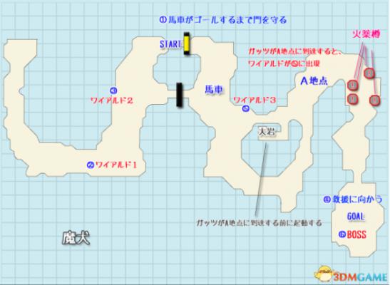 接下来详细介绍剧情模式全6大篇章49关内容。以下地图等图片内容出自日站“攻略総合トップ”中的“ベルセルク無双攻略データベース”以及攻略裏技屋的“ベルセルク無双 攻略データ”,页面内有更多详细的游戏攻略,需要的同学可以进去看看。游戏默认为Normal难度,笔者以Hard难度开打,不推荐上手Hell难度。