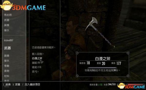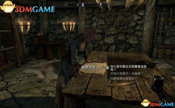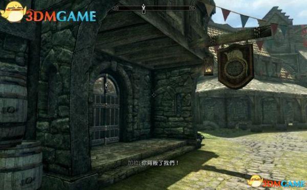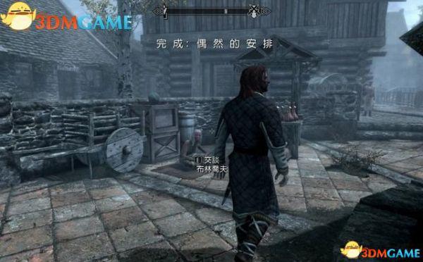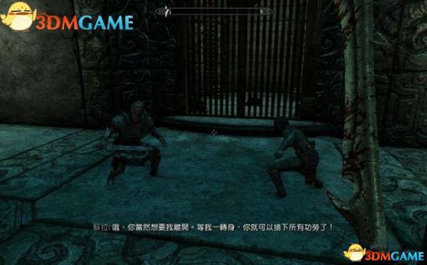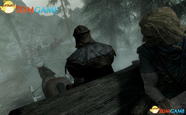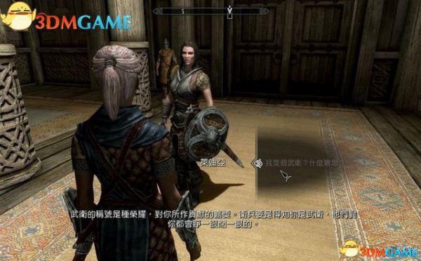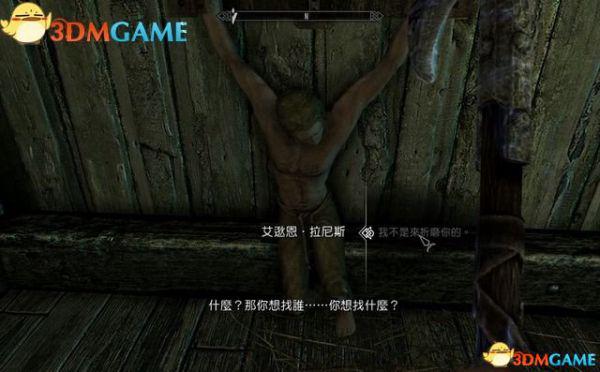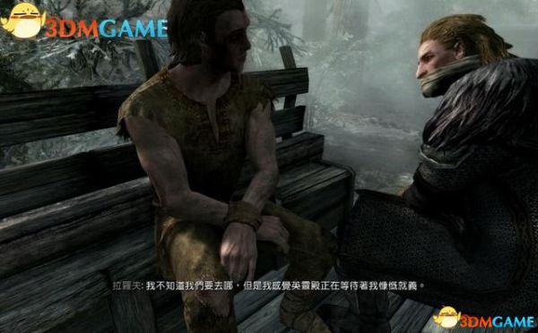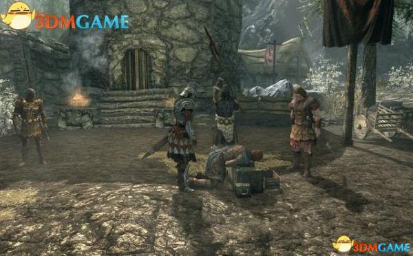拉罗夫为主角割开绳索,主角搜索旁边的风暴斗篷战士尸体,得到一套简单的护具和武器,在道具菜单里装备上,用来消灭随后赶来的帝国士兵。