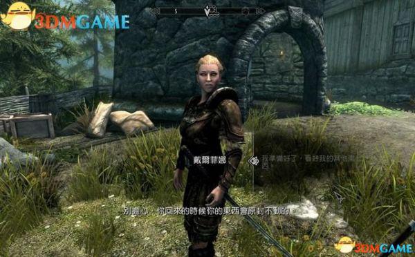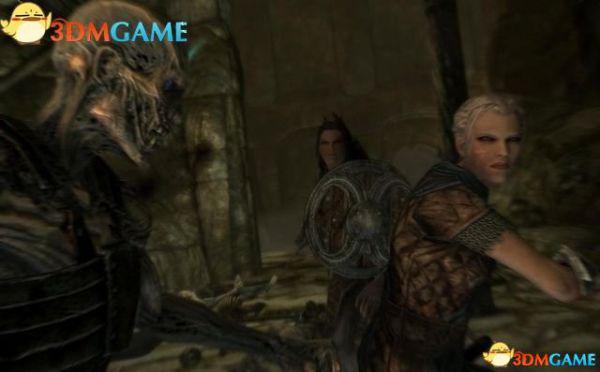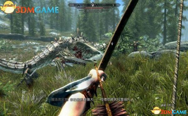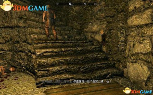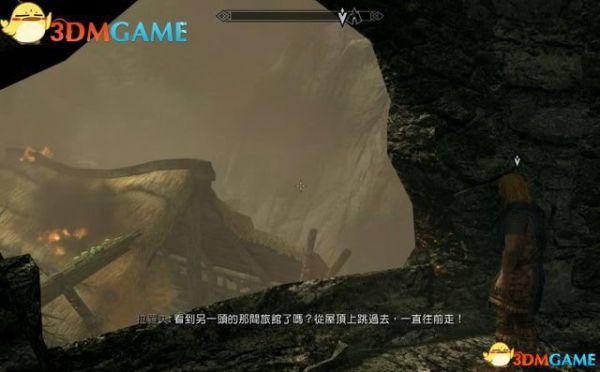 继续跟随拉罗夫穿过洞穴和溪流,途中还会遇到帝国兵,记得搜取弓箭,后面屠龙任务要用到。