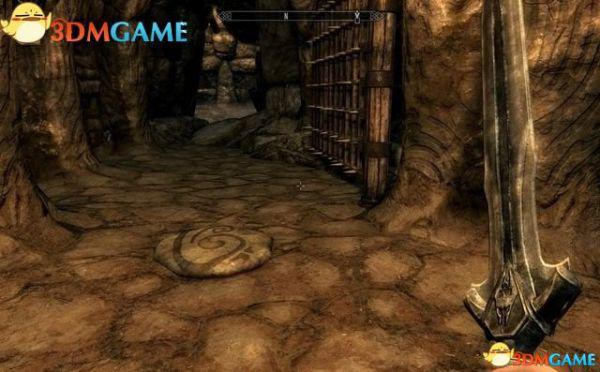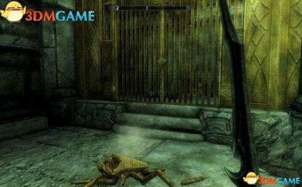 这里有道铁栅门,后面的小屋子里有只拉杆,用它开门。