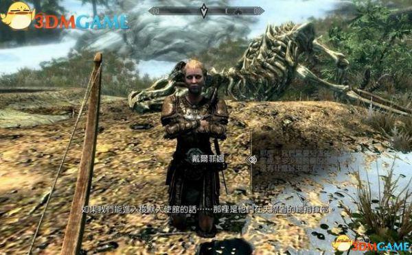 赶到一片遗迹,在这里要解决掉一些诺德亡灵兵,还有一只巨龙。