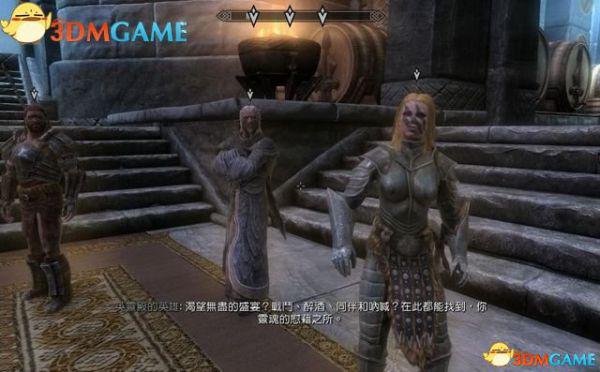 在大厅里找到三名勇士:葛拉斯、哈孔、费迪尔,和他们分别对话,完成本任务。