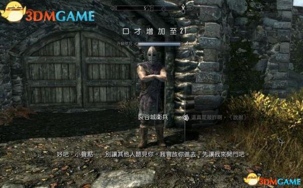 因此,在龙临堡的大门廊处,上楼梯找平台上的卫兵交谈,要求他打开陷阱。