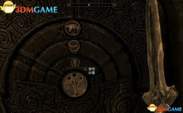 来到如图的门前,这里要将三层旋转环上的图案,转成如图的样子,再将钻石龙爪放上去开门。