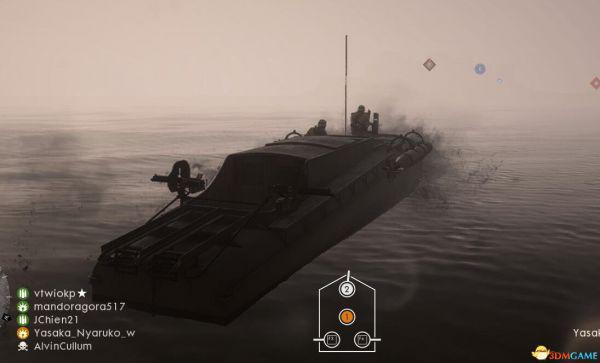 一号位是驾驶员 负责移动载具以及发射鱼雷 鱼雷发射后沿着船只正前方射出去 不可控制 搭载两颗 会自动补给
