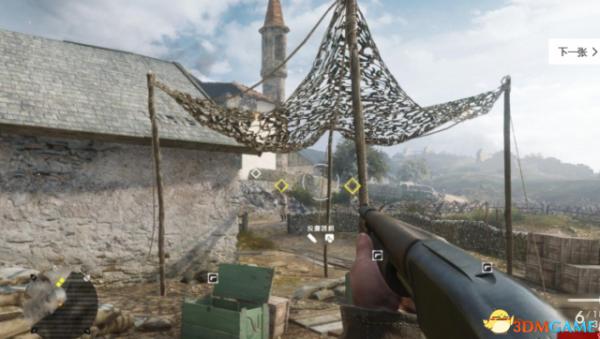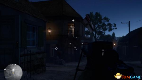 依旧建议简单难度,开始三辆车来的时候马上标记,这样基本全图的敌人都能看到了,起始位置右边有个水塔下面有武器库