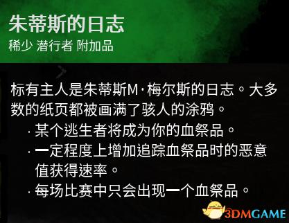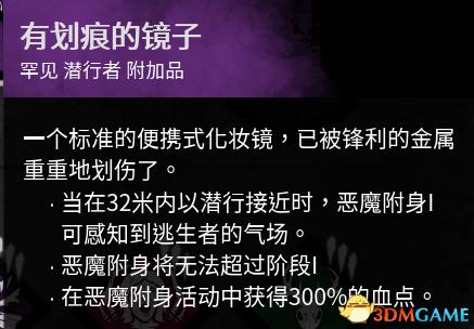 使用方法:非常容易找到人,找找发电机,人都听不到你的心跳。见到人就砍砍砍砍砍跟你绕无敌点或者你看不见他了直接开潜行透视。非常IMBA
